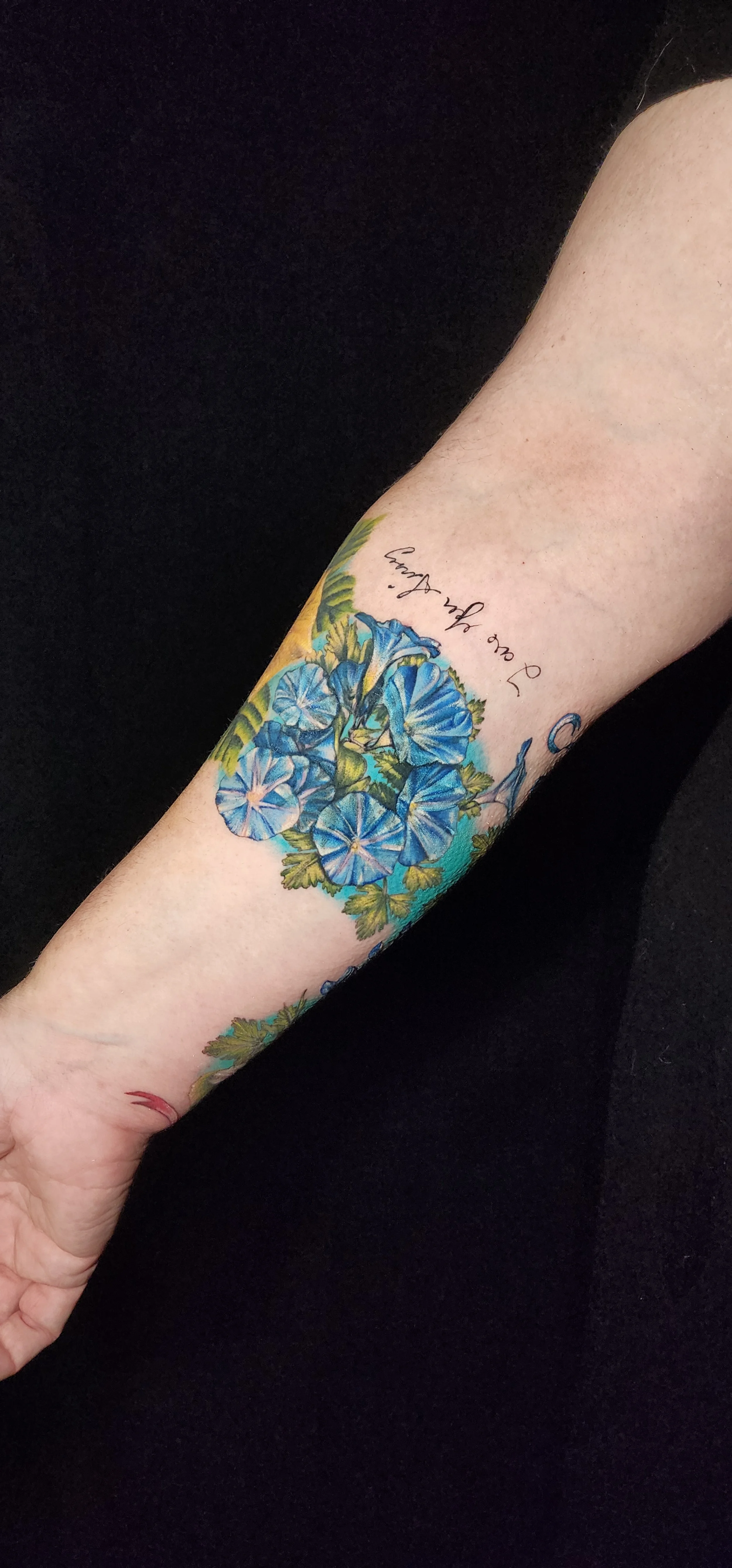 “Meet Justin (He/Him): A meticulous artist with a passion for creating unique, story-telling tattoos. Justin specializes in fine-line, micro realism, and neo-traditional tattooing, although he is well versed in most styles. His tattoos are very emotional and sentimental, and he loves working directly with clients to illustrate their lives. Justin believes that his purpose in life is to help people illustrate the journey of their lives through
